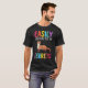 My 11 yo wore adult XL (5’7” 165#). The 8yo is small framed. She wore adult small and tied it in the back. Grandma wore adult large with long sleeve shirt underneath. Tall girl adult medium. Dark haired male adult large. Good quality dark Heather gray, Gildan brand shirt. -it was next up from basic choice and cost about $20 per shirt. Not too thick or thin. Washed and dried well, no major shrinkage. Not see-through. Can wear a bra under it fine. Screen print is just as shown and well done, front and back.