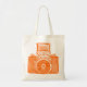 A bag with a high contrast, high passed filtered and vectorized image of a vintage East German camera from the 1950s. Creating a strong bold toothy retro screen print. or medieval Gothic brass rubbing like effect.