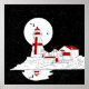 A black and white illustration of East Quoddy Head Lighthouse ,also known as Head Harbour Lightstation at night.