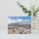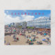 A beautiful view of people on the beach in Eastbourne in England printed on a postcard.