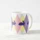 Have a preppy Easter with an argyle pattern of pink, purple, yellow, and blue with the silhouette of a purple bunny.