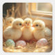 Easter Baby Chicks With Gingham Eggs Square Sticker