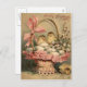 Easter Basket Egg Chick Pink Bow Holiday Postcard