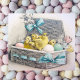 Easter Basket with chicks, eggs, and flowers