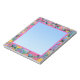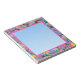 5.5” x 6” notepad with an image of pink, blue, yellow and purple wicker Easter baskets, beautifully decorated Easter eggs in hues of blue, pink, yellow, green and purple, violets, yellow daffodils, and chicks behind a blue gradated square with a pink border. See the entire Easter Notepad collection under the OFFICE category in the HOLIDAYS section.
