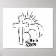 Easter Bible Verse Poster with cross and empty tomb and bible verse Reflective typography. "He is not here; He has risen as he said."