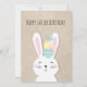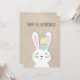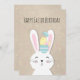 Tender pastel colors and spring palette create holiday mood and cartoon bunny makes this design cute.