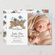 Celebrate your springtime baby with this adorable Easter Blessing photo announcement! This whimsical illustration features beautiful artwork that captures the spirit of the season with its playful floral design. The adorable bunnies, pretty Spring daffodils, and sweet blue birds add a unique touch, making this Easter baby announcement the perfect way to share your big news! Simply personalize with your birth stats and your favorite photo of your sweet new baby! This card is available for download. Save time and money by sending your announcement digitally! An affordable way to spread the news of your little Easter blessing!