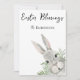 Easter Blessings Cute Curious Grey Bunny GreenLeaves Easter Greetings Card.