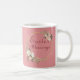 Easter Blessings Mug or cup, light maroon background with floral wreath pink, white and gold circle. In darker maroon has "Easter Blessings." Happy Easter! See matching paper goods theme items in my store!