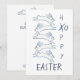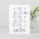 Leaping blue bunny rabbits on a crisp white background are wishing you a "Hoppy Easter" on the front and "Have a Bun-derful Day" on the reverse of this flat Easter card. A simple, minimal greeting card with a touch of humor. Whimsical, original, unique artwork & design by Tuzi Williams.