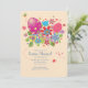 A burst of colorful flowers, foliage, eggs and butterflies signifies Easter is here. A charming invitation for any Easter celebration. Want to save money? Print the invitation in the standard, square edge format.