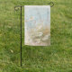Flag bracket is super easy to assemble. There is a prong fork that goes into the ground. I dug a shallow hole to bury the prongs and still had enough height. Reinforced stitching on for the flag opening. Colors are true to the website. Mona Lisa's sign with the text is easy to read, the text is clear and not blurry.