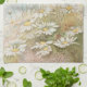 ...illustration, flowers, nature, spring, flora, blue sky, white, green, meadow, field, soft muted colors, rusting, chromolithograph, lithograph print, vintage, retro, cottagecore, stately. sophisticated, elegant, rustic, Louis Prang, daisies, wildflowers