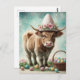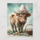 All rights reserved © Angelandspot AI generated adorable brown Highland cow in a fancy Easter hat posing next to a basket of Easter eggs