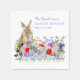 Easter brunch and egg hunt floral custom napkins with cute Easter bunny and colorful watercolor wildflower meadow. Ideal for spring garden party. Easy to personalize cornflower blue typography script so you can add a family name. whimsical boho wildflower meadow design perfect for a spring garden party Easter egg hunt. Original artwork by artist Catherine Sweetman