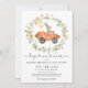 Hop on over for an Easter brunch and egg hunt! Invite your guests to your party with this super adorable invitation featuring a cute rabbit riding a carrot car framed with lush wildflower wreath.