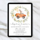 Hop on over for an Easter brunch and egg hunt! Invite your guests to your party with this super adorable invitation featuring a cute rabbit riding a carrot car framed with lush wildflower wreath.