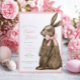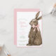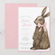 Invite your friends over for brunch this Easter with this tasteful chocolate rabbit Brunch invitation. This Easter invitation has a hand watercolored chocolate bunny with a pink bow. The back has a speckled pattern on a pink background. Colors used include olive green, pink, grey, and brown. All text is editable to meet the needs of your event.
