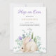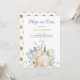 Cute Easter invitation with white bunny picture and watercolor flowers. The invitation is easy to customize by choosing any font you like, font color and size. The background of the invitation is presented in gold dots.