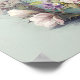 The Easter Bunny amongst Blooms is painted in soft pastel watercolors, with fluffy white fur and a cute pink nose. Its eyes are bright and friendly, and it seems to be looking straight at the viewer with a cheerful expression. This painting makes a great gift to family and friends.