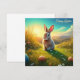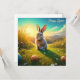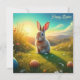 A cute Easter bunny sits in the middle of a blooming spring meadow, surrounded by colorful Easter eggs and bright flowers. The warm sun bathes the scene in a golden light, while gentle hills in the background create an idyllic atmosphere. A picture full of spring magic and Easter joy!