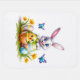 Baby blanket is shown in a blue and white with a cute Easter bunny print.