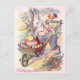 This spring send someone an Easter greeting! This vintage print depicts Easter bunny, Easter chick, Easter colored egg, rooster, and wheelbarrow.