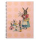Easter Bunny with Flowers and Chickens - This is a sweet vintage illustration of the Easter Bunny, playing with little baby bunnies and some chicks with Easter Eggs. The vintage Easter Bunny is based on a 1919 postcard, this is a real vintage image. The mother easter bunny is standing with flowers in her arms. The baby bunnies are all around the little chicken that's hatching from the easter egg. Mommy Easter Bunny and the baby bunnies are all dressed up in in blue and pink dresses. It looks like all the baby easter bunnies are dancing around the little easter chickens.