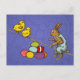 Easter Bunny chickens eggs illustration Holiday Postcard