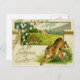 This spring send someone an Easter greeting! This vintage print depicts an Easter bunnies, colored Easter eggs, a church, and cotton.