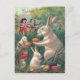 This spring send someone an Easter greeting! This vintage print depicts Victorian Women observing Easter Bunnies handling colored Easter eggs in grass.