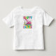 This adorable Easter-themed image features a cheerful pink construction crane operated by a cute bunny wearing bunny ears. The crane is lifting a basket filled with colorful Easter eggs. Surrounding the crane are more decorated Easter eggs and vibrant flowers, adding to the festive atmosphere. The words "HAPPY EASTER" are prominently displayed in bright, playful colors at the top and bottom of the image, making it perfect for a toddler's Easter t-shirt.