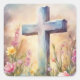 Empty Cross Easter Sunday Floral Details Square Sticker