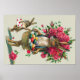 This spring send someone an Easter greeting! This vintage print depicts and Easter bunny dad and child carrying roses and colored Easter eggs.