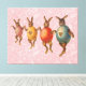 We found the original image on a 1907 Easter postcard. The vintage Easter bunnies are so funny! Just like an Easter Bunny to want to dance like that! Easter bunny eggs are a very interesting thing, dancing like that! There's a bunny wearing a blue egg, a bunny wearing a red egg, a bunny wearing a yellow egg, and a bunny wearing a pink egg, way at the end of the bunny dancing line! Probably not right for the serious rabbit, but a perfect dance for the silly bunny!