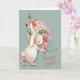 On the front of this pretty Easter season card is a white bunny carrying a bouquet of spring coral pink flowers. The matching coral pink text says "Happy Easter". The inside of the card has two custom text fields and a another image of bunnies with flowers at their feet. Pretty for the Easter season. All the text is easily changed to anything you'd like.