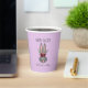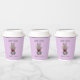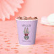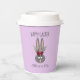 Serve your hot beverages using these Easter Bunny Disposable Coffee Paper Cups. Each is designed with a cute grey bunny and has pretty burgundy flowers on her head. The design is on both sides and the text is "Happy Easter." You can add your name or custom text in hand lettered script across the lower center or delete if you wish. The background is pastel lavender purple and customizable to any color you wish.