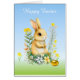 Cute Easter bunny with golden egg and flowers Happy Easter Card. Text can be personalized for Easter or Birthday. Bunnies symbolize longevity, abundance and good fortune.
