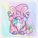 This design features a gnome dressed as the Easter Bunny with easter eggs in pastel watercolor rainbow colors. Happy Easter 🐣