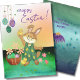 Easter bunny holding chicken holiday card