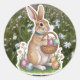 Celebrate Easter with this adorable Easter Bunny sticker! Featuring a cheerful bunny holding a beautifully decorated egg, surrounded by colorful flowers and pastel elements, this design is perfect for adding a festive touch to gifts, crafts, scrapbooks, and more. The playful and glossy finish makes it a great addition to Easter decorations. Ideal for kids, party favors, and Easter-themed projects. Get yours today and spread the Easter joy!