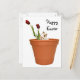 Bunny rabbit peeks out of a flowerpot with tulips to wish a happy Easter photo Easter postcard