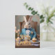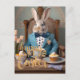 Easter bunny in a blue coat and bow tie postcard