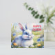 Celebrate Easter and the moment of spring happiness with this " Easter bunny in a garden” featuring an adorable blue eyes rabbit surrounded by flowers.