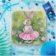 Cute watercolor bunny wearing a pink tutu in spring garden