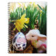 Easter Bunny kissing Cow Egg Photo by Sandy Closs Easter Bunny / Rabbit and Black and white cow Easter egg with yellow daffodil.