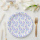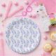 Happy Easter paper plates and matching paper napkins with blue and purple bunnies.
