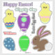 Festive fun for kids Hippity Hop Happy Easter Easter Egg Hunt Bunny Rabbit and Yellow Baby Chicks hatched from their colorful striped shells, Decorated Easter Eggs with blue dots, green, purple Green Flower. Designed for extra large vinyl stickers to stand out and cut out individually. Original Artwork design © TamiraZDesigns.