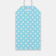 This is a cute Easter gift tag featuring a watercolor image of an adorable bunny, Easter eggs and flowers on a light blue and polka dot background. All the text on the card is customizable with your own.